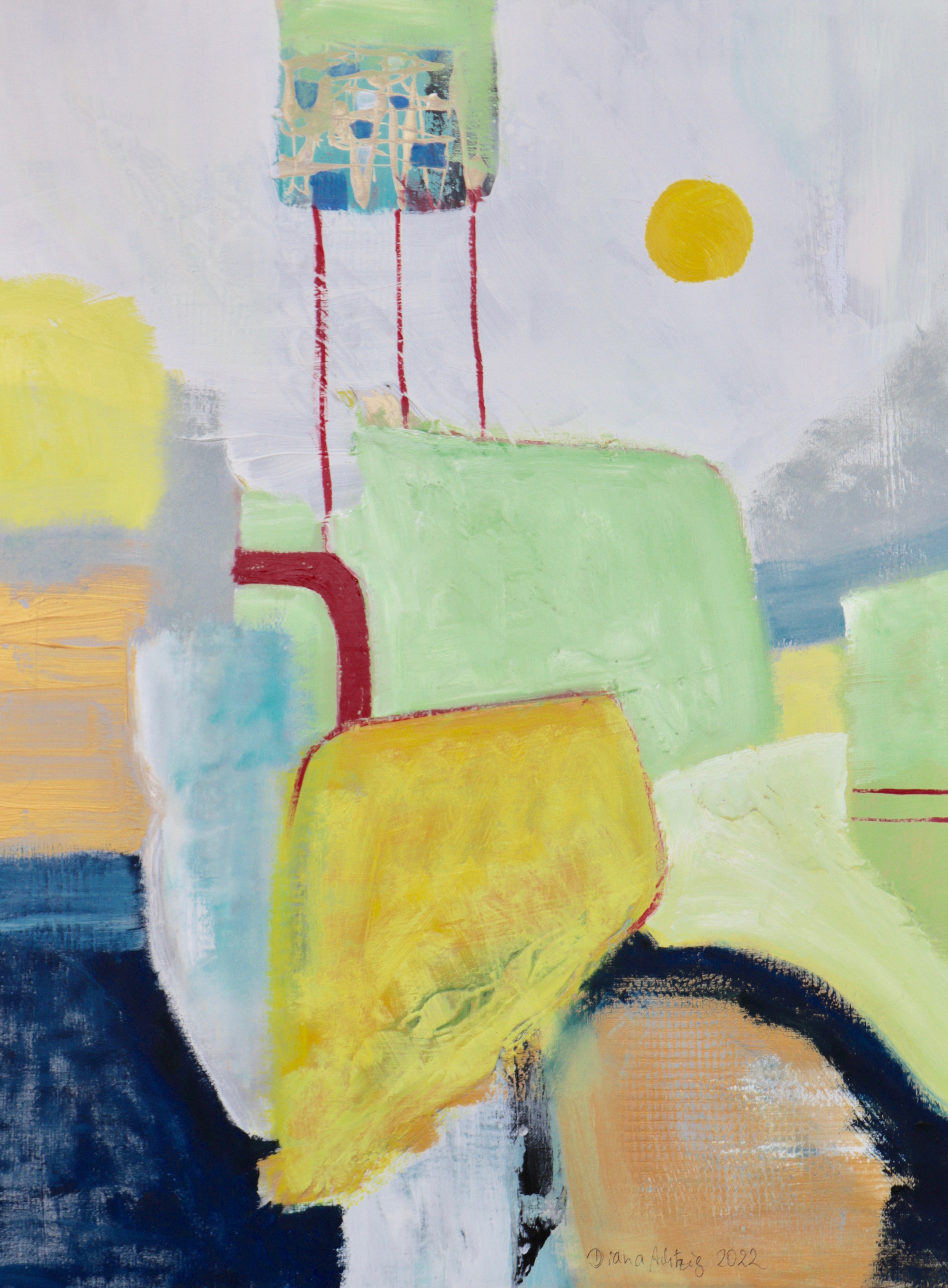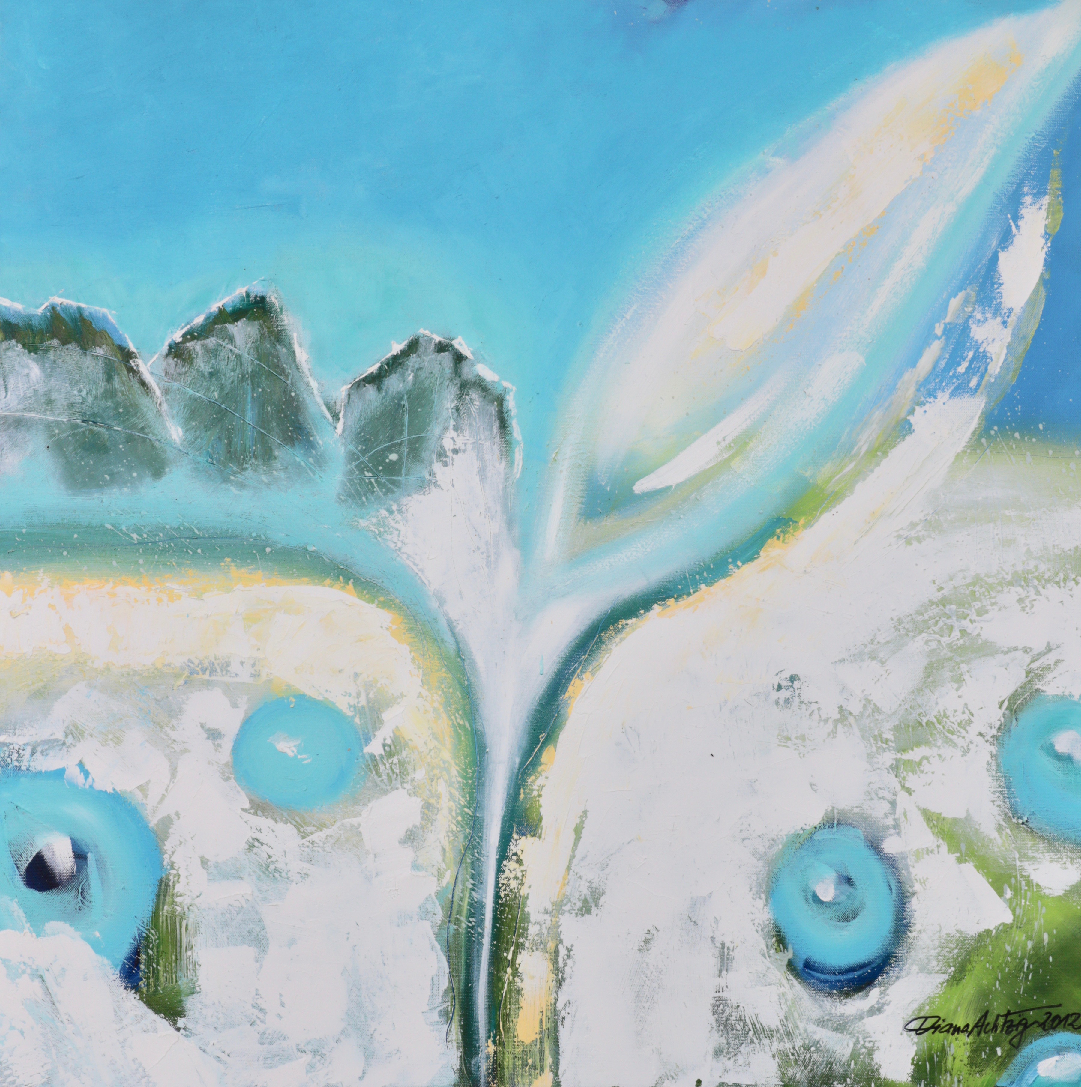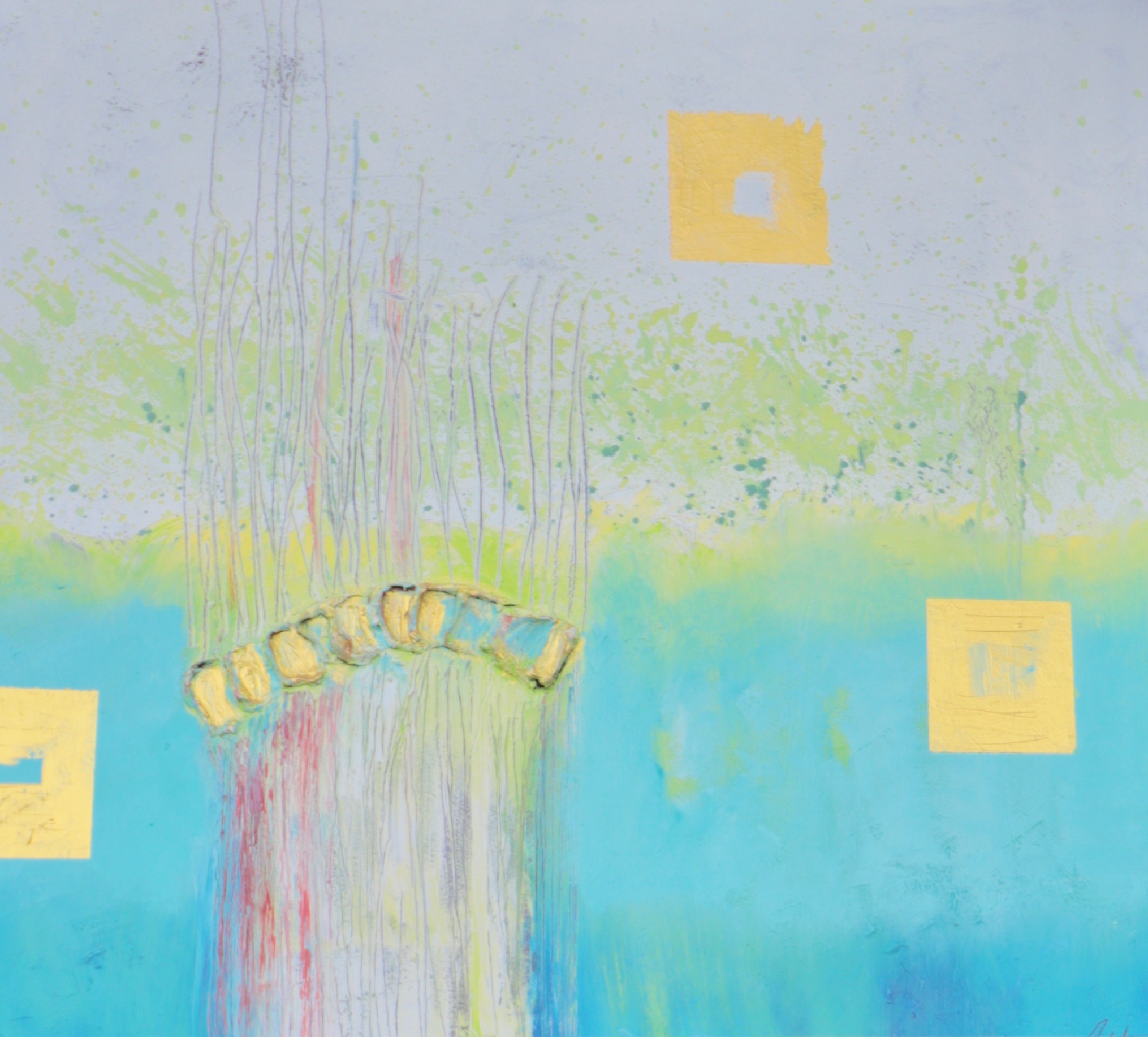 Ein sehr konkreter ökologischer Lebensgedanke spiegelt sich in ihren abstrakten Motiven über die ungegenständliche Landschaftsanmutung wider. Unterstützt wird Diese durch florale Motive, die immer wieder in den Werken auftauchen. Sie folgt damit auch einem Trend. Denn vor dem Hintergrund des Klimawandels und zunehmenden Extremwetterlagen lässt sich auch allgemein im Kunstmarkt ein Umdenken in diese Richtung verorten.