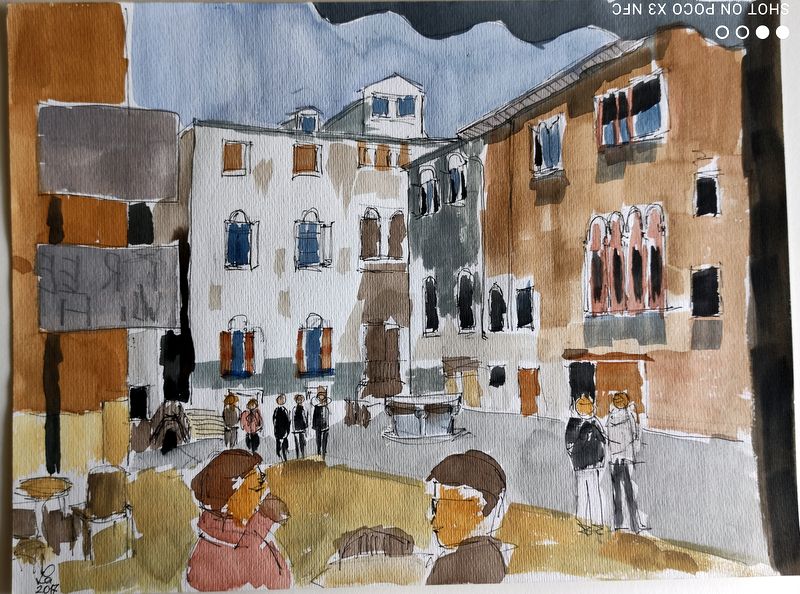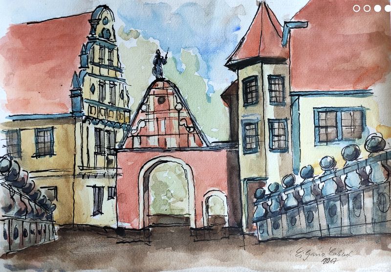 Seit Januar 2015 zeichnete er regelmäßig mit den Biesdorfer Montagsmalern. In dieser Zeit begann er mit wasservermalbaren Aquarellstiften zu malen. Zwei Mal war er mit seiner Frau mit vielen Montagsmalern zum Freilandzeichnen (Plein Air) in Hohenfinow. Die Häuser, Plätze und Landschaften von seinen Urlaubsreisen bilden meist seine Motive dieser Doppelausstellung. Die Corona-Zeit hat das gemeinsame Malen leider sehr eingeschränkt, so der Künstler.
