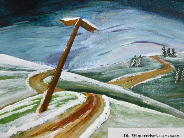 Den Schwerpunkt ihrer Einzelausstellung bildet das Thema ab, welches sie ihr Leben lang begleitet hat. Das ist die klassische Musik, besonders die Kunstlieder. Lieder von z.B. Franz Schubert, Robert Schumann, Hugo Wolf und Gustav Mahler u.a. sind ihr wichtig. So entstand der Wunsch, sich diesem Thema auch über die Malerei anzunähern. "Diese Annäherung an die „Winterreise“ von Franz Schubert, die ich oft hören konnte, wurde mein zentrales Thema für das erste Halbjahr 2020 und damit dieser Ausstellung.", so die Künstlerin