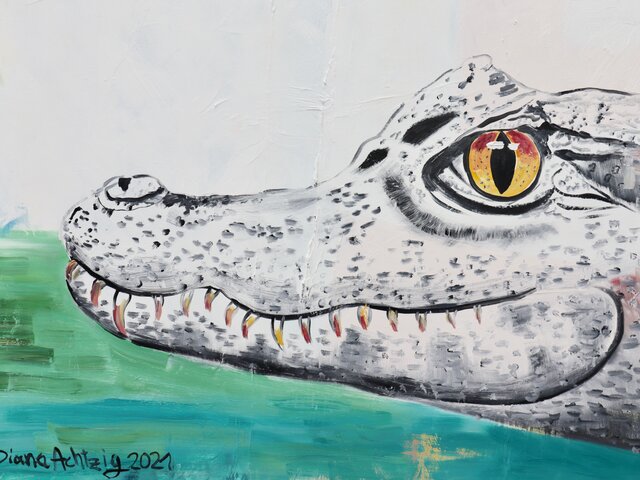 Die moderne Tierportrait-Malerin Diana Achtzig (Studium: Universität der Künste Berlin) möchte den Gästen der Galerie StadtInsel Havelberg über Tier-Allegorien ihre momentanen Themen der Persönlichkeitsentwicklung, Selbstverwirklichung, Selbstbegegnung, persönlichen Weiterentwicklung, Bewusstseinsentwicklung und der Bewusstseinsentfaltung näherbringen. Die Tierzeichnungen und Tierportraits verstehen sich als symbolische Identifikationsfiguren. Schon Pablo Picasso (1881-1973) konnte so einen Perspektivwechsel in seiner malerischen Betrachtung - z.B. seiner Frauenfiguren - umsetzen. Somit malte der kubistische Künstler ganz verschiedene Perspektiven von der gleichen Person auf nur ein Portrait. Auch seine Tierdarstellungen sind nachhaltig in die Kunstgeschichte eingegangen. Die Tierportrait-Malerin Diana Achtzig verbindet somit den Mensch und das Tier in ihrer Gegenwartsmalerei miteinander. Ihre Tierportraits zeigen die eigene Entwicklung der Persönlichkeit. Damit werden diese zu einer Führungsfigur und finden somit zu ihrer eigenen Selbstbestimmung. Das sind Raubfische (Haie), Zierfische, Kaimane (Krokodile), Raubkatzen, Hauskatzen, Tiger, Leoparden, selbst niedlichen Hasen wächst plötzlich ein Raubkatzenfell mit Tigermustern. Ein digitales Videokonzept fördert die Künstlerinnen im Kunstmarketing. Webseite: https://www.dianaachtzig.de/.